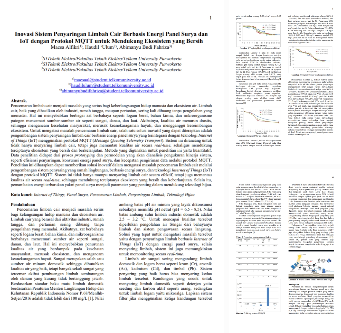 Liquid waste pollution poses a serious threat to human health and aquatic ecosystems. Waste from industry, households, and agriculture is often discharged without proper treatment, leading to contamination by hazardous substances. This reduces water quality, endangers biodiversity, and disrupts ecosystem balance. To address this, an innovative liquid waste filtration system powered by solar panels and integrated with Internet of Things (IoT) technology using the MQTT protocol is proposed. This system not only filters waste but also monitors water quality in real time, promoting a clean and sustainable environment.